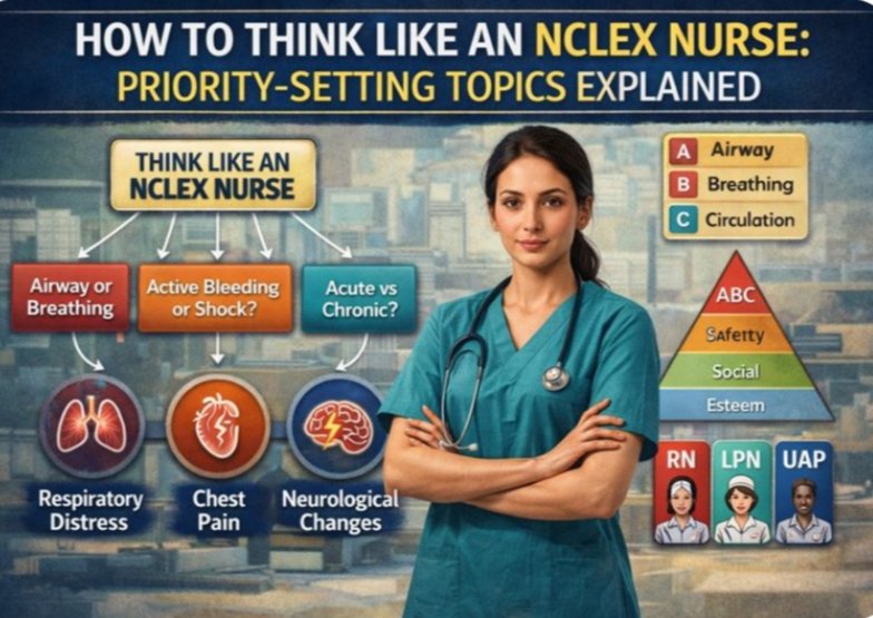 Learn how to think like an NCLEX nurse with clear priority-setting strategies, ABC framework, safety rules, and delegation tips explained in simple, practical language.